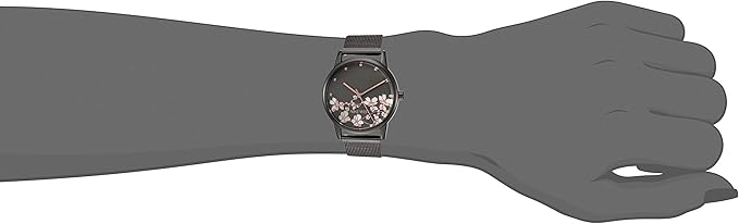 - Gunmetal matte dial with floral design; rose gold-tone hands and markers